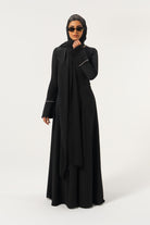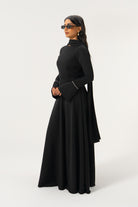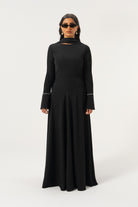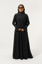 This silky crepe dress was designed to make the trendiest modern styles accessible to modest girls. She’s a full-coverage, high neck dress with a gorgeous, voluminous flared skirt that will make you want to never stop twirling like a girly girl. The most special thing about her is the subtle pearl detailing along the flared cuff which elevates the dress to another level. Wherever you go wearing this dress, be prepared to turn heads. Comes with an additional scarf.