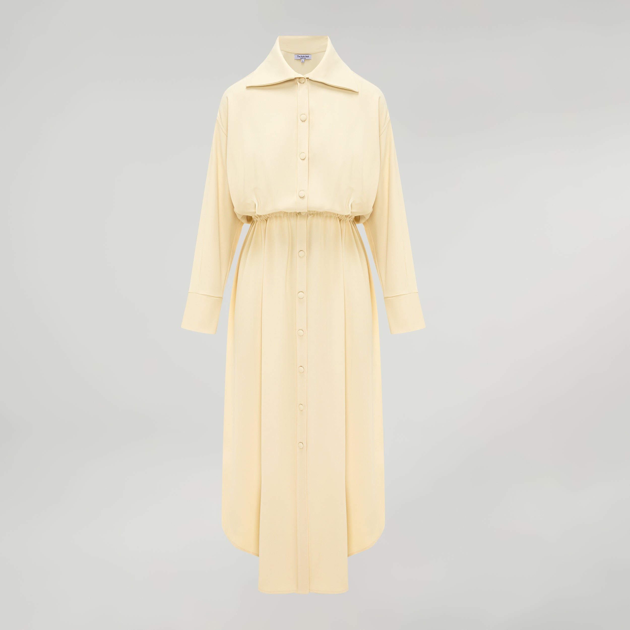 The long version of our original oversized shirt design in a buttercream colour. Summer may be over but our obsession with this elevated neutral colour isn’t. This shirt dress is a truly seasonless piece and a perfect addition to your capsule modest wardrobe. The styling options are limitless. Opt of knee high boots in the fall/winter season or slides during the summer. Prepare to be beyond obsessed with the colour and fit of this dress, you’re actually going to be unhappy while taking it off because that’s how good it feels. You’re able to layer this one with pretty much any jacket no matter what the colour and you’ll look like the most chic girl in the room. The best elevated basic on the market.